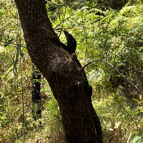 Niet lang daarna sprong er ineens een bijzonder dier in een boom. Het bleek een tree goanna te zijn. Een hagedis van wel 1,5 meter lang. Hij schrok van ons toen we langsliepen en dan springen ze dus in een boom. Stevig vasthoudend aan de stam, terwijl hij ons goed in de gaten hield. En wij hem natuurlijk. Wat een prachtig beest om zomaar tegen te komen in het wild.