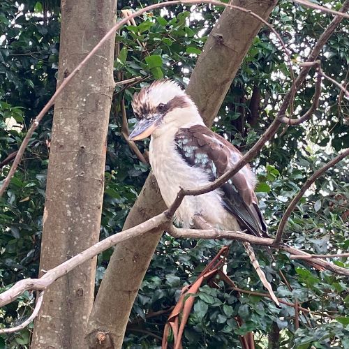 De kookaburra is familie van de ijsvogel en als je goed kijkt, zie je ook iets blauws in z’n vleugel. In tegenstelling tot de ijsvogel, houden kookaburra’s wel van wat aandacht en zijn ze daardoor goed te spotten. Ze zitten vaak heel stil op een tak. Totdat ze hun vrienden tegenkomen: dan veranderen ze in lachende apen.