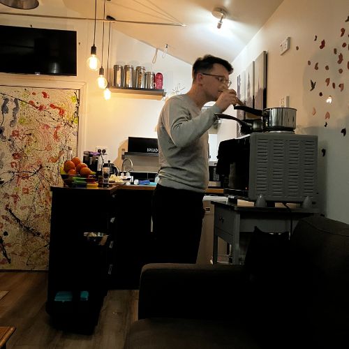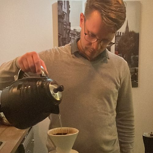 We staan onszelf toe om max. 1x per dag een koffie te halen bij het café in het gebouw waar we zitten. De rest van de cafeïnebehoefte vullen we aan met koffie gemaakt met een Aeropress. Een heel handig ding waar je redelijk snel koffie mee kan maken. Thuis staat er een koffiecupjes machine. Daarnaast is de handmolen voor koffiebonen mee, zodat we ook extra lekkere koffie kunnen zetten. Kortom: genoeg opties om koffie te drinken!