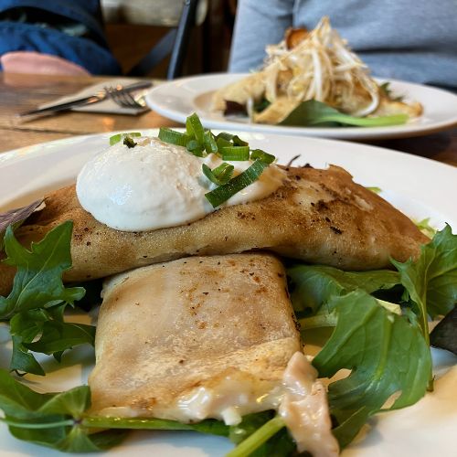 Tot nu toe zijn we een paar keer uit eten geweest. Zo zijn we in het eerste weekend naar een filmhuis geweest, waar na de film een buffet met Indisch eten geserveerd werd. Allemaal verschillende gerechten, gemaakt met verse groente en kruiden. Ook hebben we al een keer pizza geprobeerd, ook dat was geslaagd. En pannenkoeken als lunch, altijd een goed idee. Alleen niet zoals wij ze kennen met stroop en spek, maar met een vulling van room en champignons. Het klinkt misschien niet als een lekkere combinatie, maar dat was het verrassend genoeg wel.