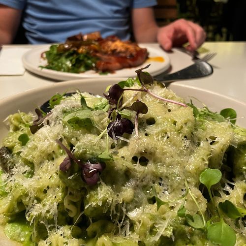 Als lunch eten we meestal een getoast broodje met hummus of chocopasta. Simpel en prima te doen. Weet je nog die 25+ horecagelegenheden? Die lonken uiteraard. Soms met kortingsacties. En tja, soms geven we daar ook aan toe. Lekker!